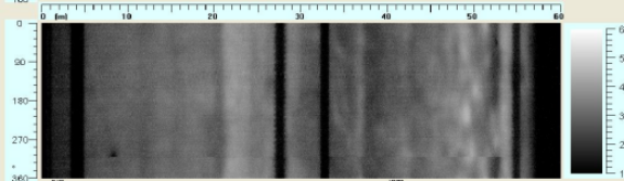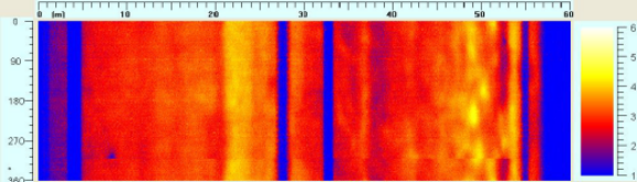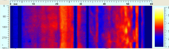溫度分布熱像圖是以不同的顏色代表不同的溫度,從而將窯體整個表面的溫度分布狀況以圖像的方式直觀的表現(xiàn)出來。菜單/染色方式下有三個選項依次為灰度、暖色調(diào)、冷色調(diào)用來設(shè)置溫度分布圖的染色方式。效果如下所示。