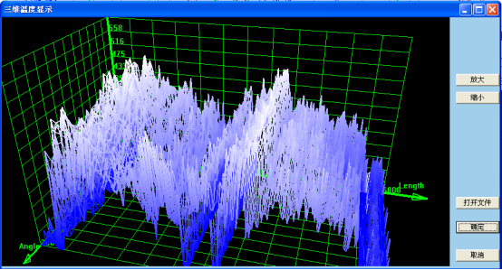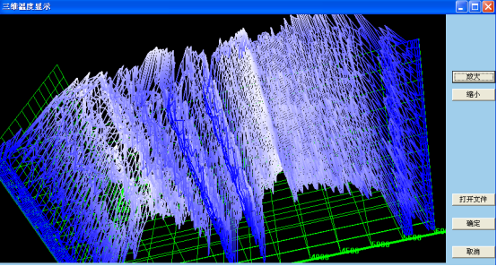 點擊三維立體圖,可以進行窯體溫度的三維觀測。其中縱坐標為溫度