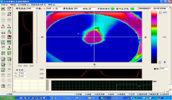 高爐紅外熱像儀是高爐紅外攝像儀與十字測(cè)溫裝置的升級(jí)換代產(chǎn)品,攝像儀提供的是模擬溫度場(chǎng),十字測(cè)溫也只能測(cè)量17點(diǎn)到21點(diǎn)的溫度。而熱像儀通過(guò)高靈敏度紅外探測(cè)器,實(shí)時(shí)測(cè)溫,測(cè)量數(shù)達(dá)到十萬(wàn)個(gè)溫度點(diǎn),溫度分辨率可達(dá)到<0.5℃(200℃目標(biāo))。實(shí)時(shí)顯示的測(cè)試數(shù)據(jù)反應(yīng)了高爐內(nèi)物料溫度或高或低的變化,能精確測(cè)出爐頂物料的溫度,直觀的反應(yīng)出爐內(nèi)煤氣流上升的高度(可取代傳統(tǒng)的氣體分析儀表)。這樣,高爐內(nèi)部燃燒情況的細(xì)微變化(特別對(duì)于物料的燃燒程度)可及時(shí)反應(yīng)出來(lái),再結(jié)合熱像儀系統(tǒng)軟件,能預(yù)測(cè)趨勢(shì)、避免事故,減少燃料的消耗,為生產(chǎn)過(guò)程控制提供定量依據(jù),可以提高生鐵產(chǎn)量和質(zhì)量,延長(zhǎng)爐齡和節(jié)能。