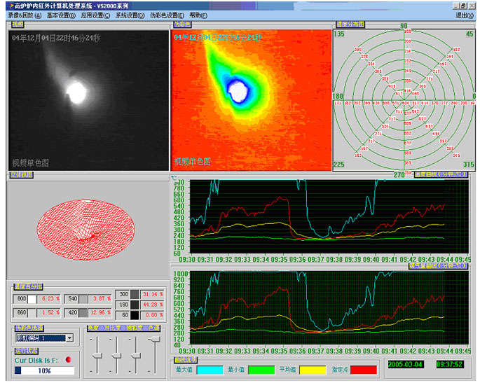 我公司自主開發(fā)的高爐爐頂溫度分析系統(tǒng)軟件,集圖像采集、視頻分析、溫度分析為一體,可及時和直觀地觀察到高爐內(nèi)的溫度變化、記錄某一時間或時間段內(nèi)的溫度,可為企業(yè)解決相關(guān)問題提供直接依據(jù)。