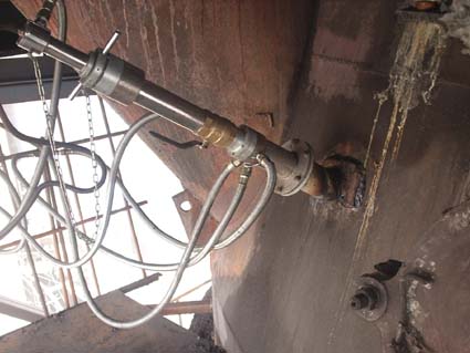 高溫探測儀內(nèi)裝專用紅外攝像機和特殊鏡頭。探測儀殼體為水冷氣封防護套,前端開孔ф2mm~ф5mm。高溫探測