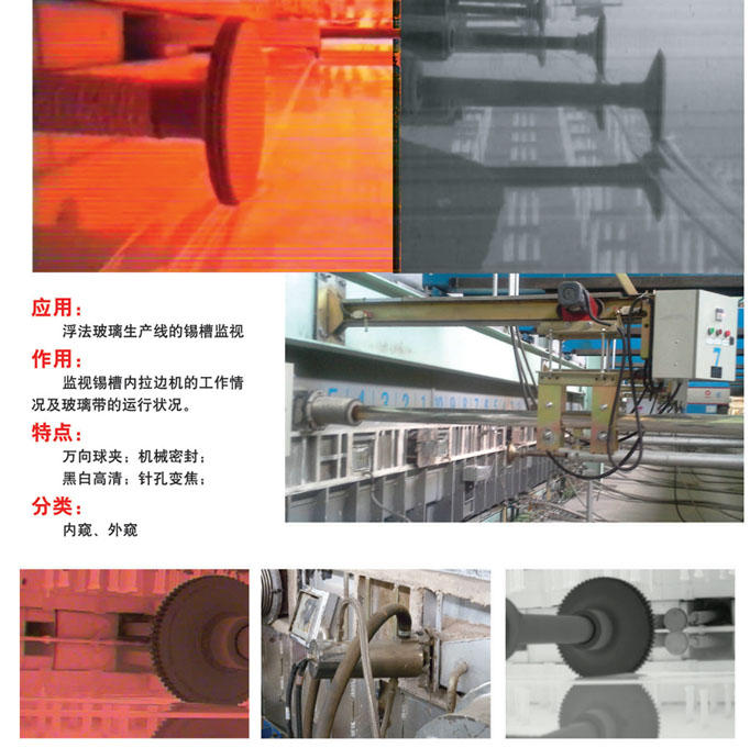 簡介:密封型高溫工業(yè)電視,主要是針對一些密封要求高、有毒氣體、爐內(nèi)正壓或防止氧化等特殊場合的高溫工業(yè)電視監(jiān)控設(shè)備。為達(dá)到密封目的,同時又方便在使用過程中維修維護(hù),攝像探頭采用球閥聯(lián)接,同時加裝多層高溫密封材料。正常工作時,高溫攝像鏡頭穿過球閥,通過微型高清數(shù)字?jǐn)z像機將爐內(nèi)圖像傳送到視頻采集系統(tǒng),專用軟件可分析溫度及物料的物理屬性。當(dāng)出現(xiàn)欠壓、停水導(dǎo)致攝像系統(tǒng)溫度升高,報警啟動,現(xiàn)場工作人員將球閥關(guān)閉后,再維護(hù)更換攝像系統(tǒng)。
