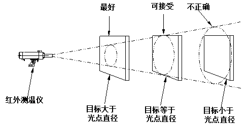 如果測(cè)量距離L為4.0米,測(cè)溫儀距離系數(shù)為200:1,測(cè)溫儀測(cè)量直徑則為20毫米。
